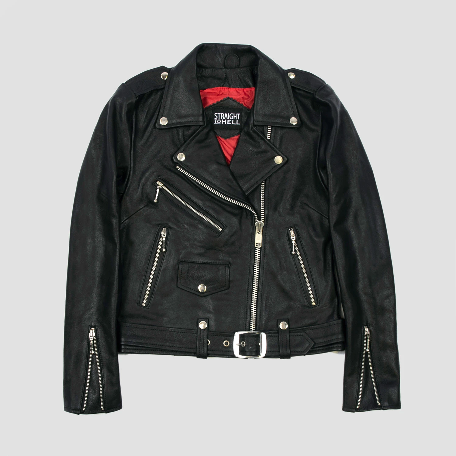 The Commando is our most traditional and recognizable leather jacket, now featuring a removable belt and polished nickel ball pull zippers. The Commando Lightweight is made with lightweight lining, making it ideal for warmer climates or seasons. Fitted, premium leather relaxes and conforms to your shape and breaks in perfectly.