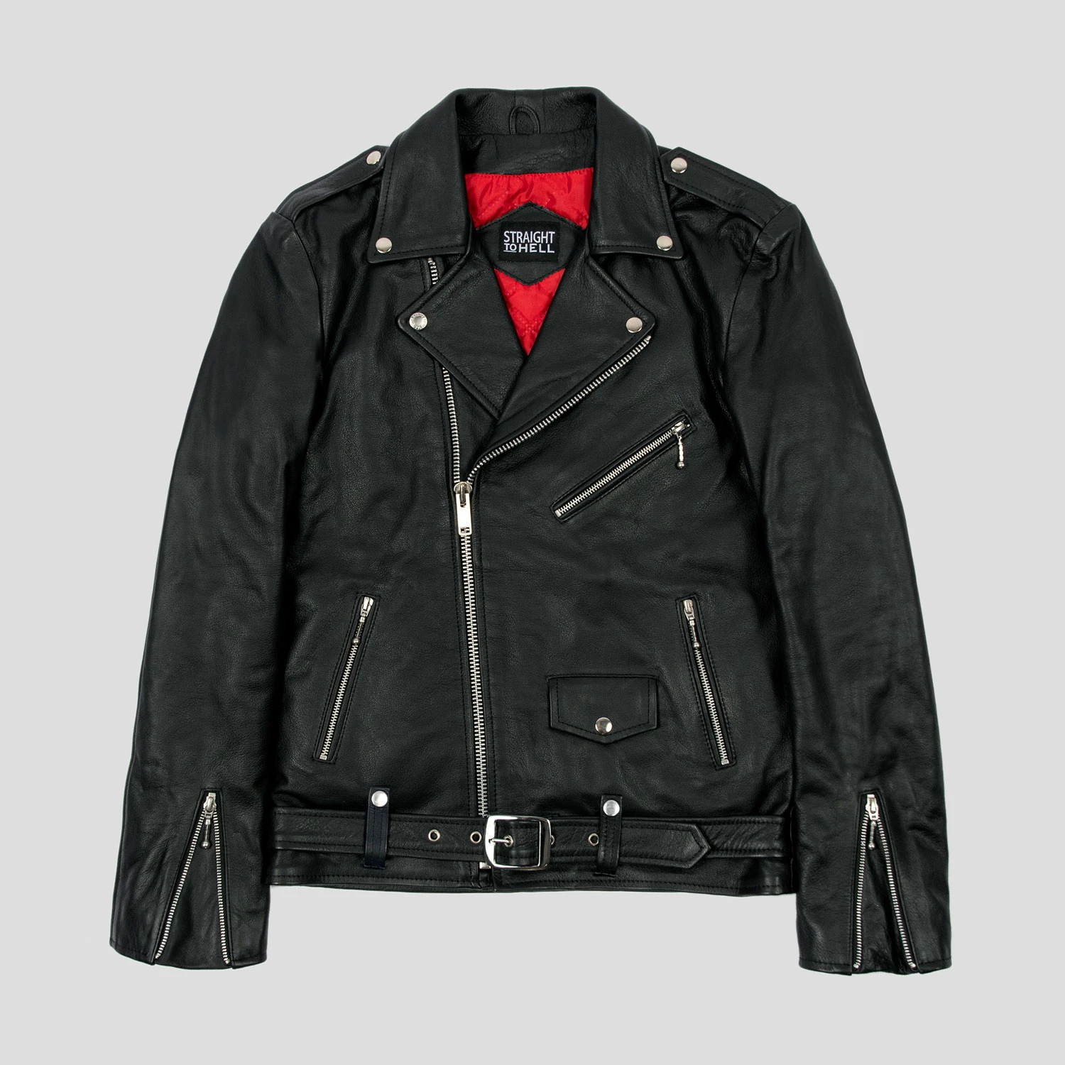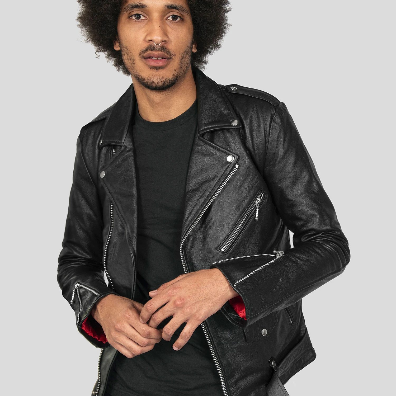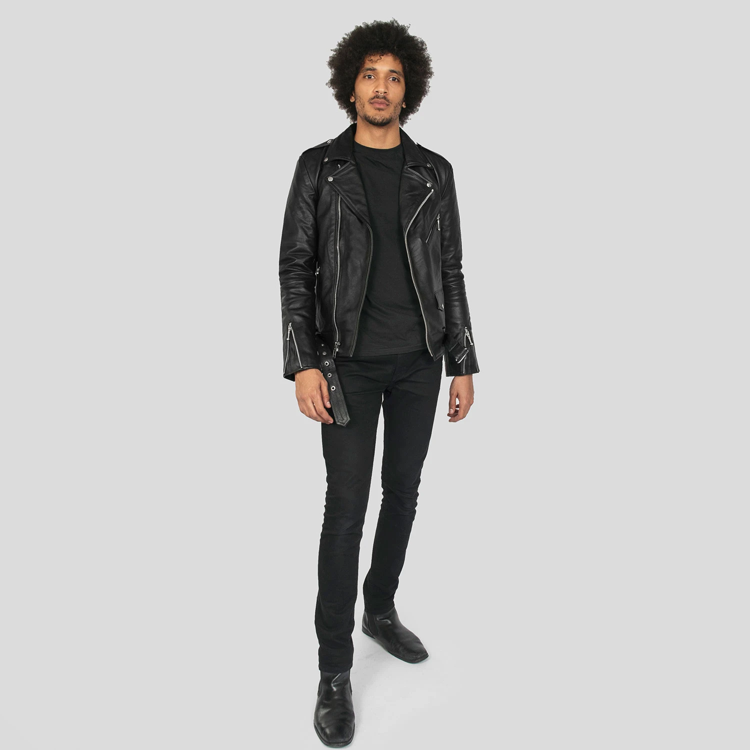 The Commando is our most traditional and recognizable leather jacket. The Commando Long fits longer in the body and sleeves, ideal for tall men. It features a removable belt and polished nickel ball pull zippers. The body features quilted lining and the sleeves are non-quilted. Fitted, premium leather relaxes and conforms to your shape and breaks in perfectly.
