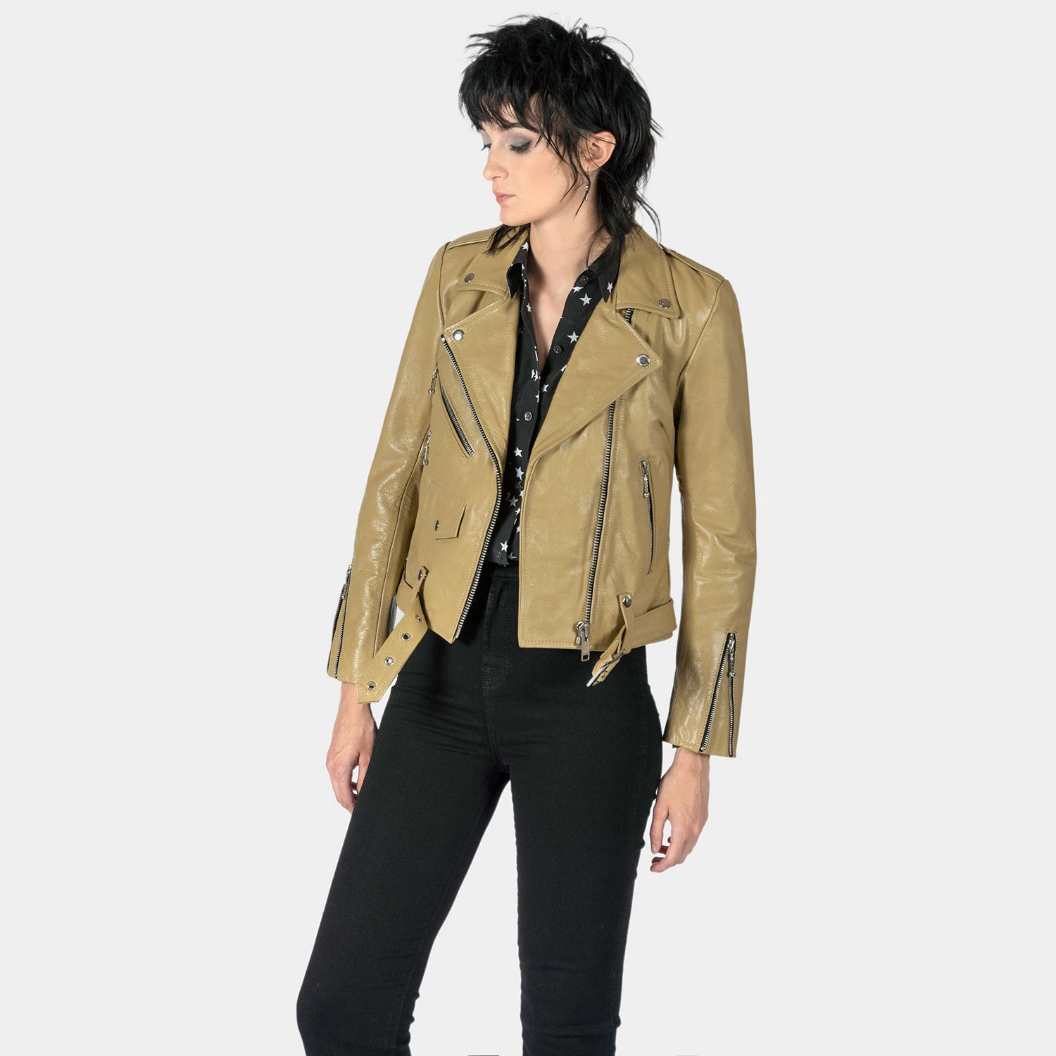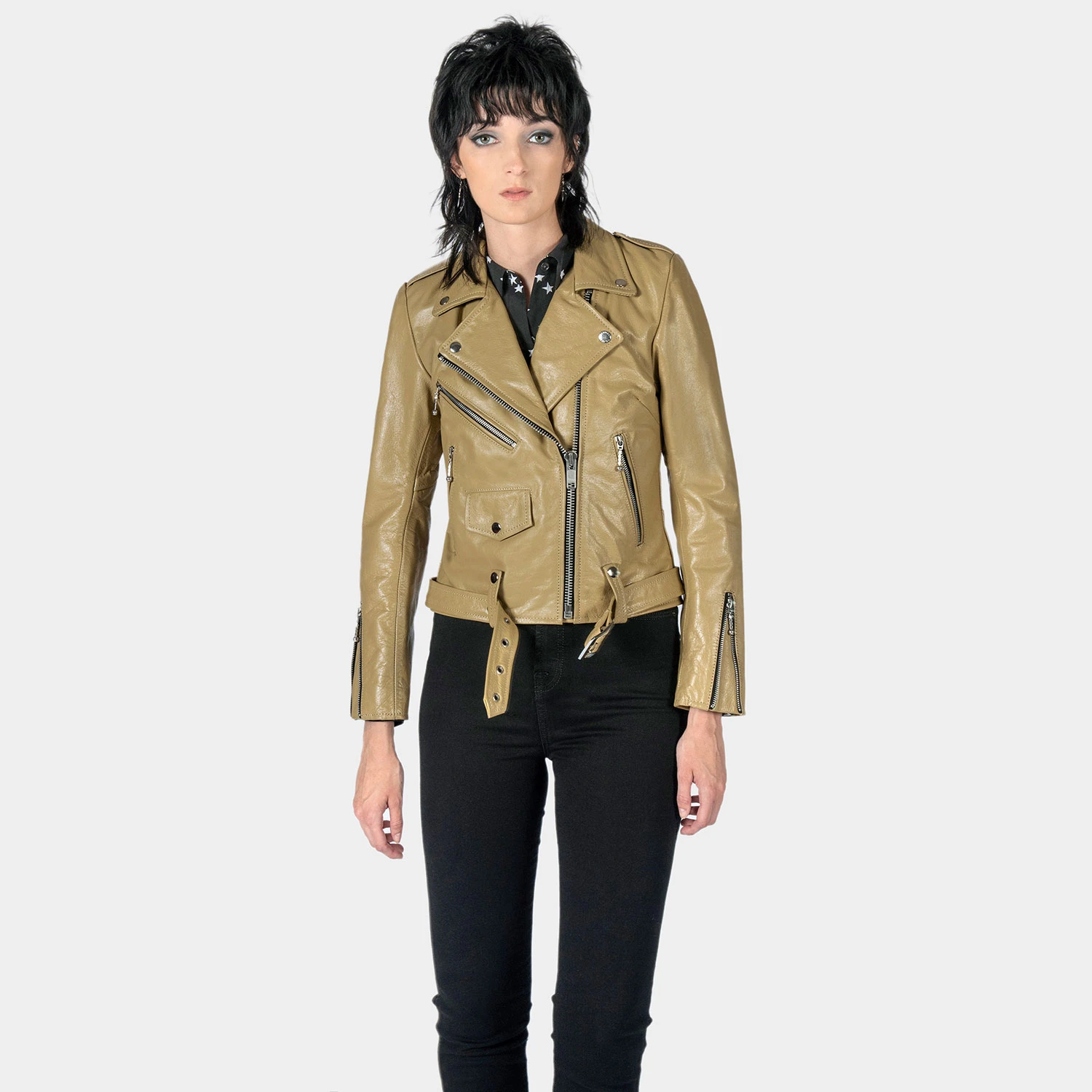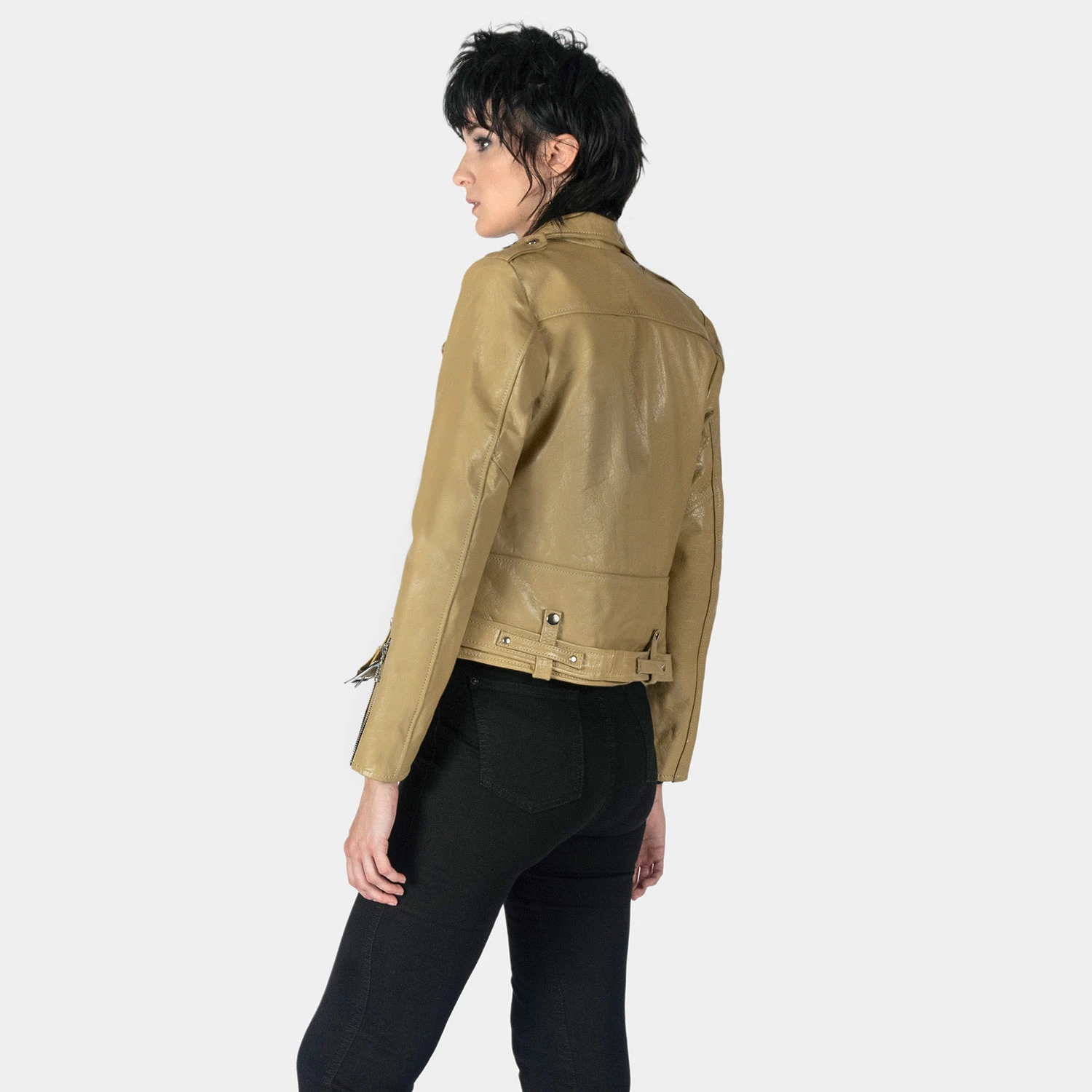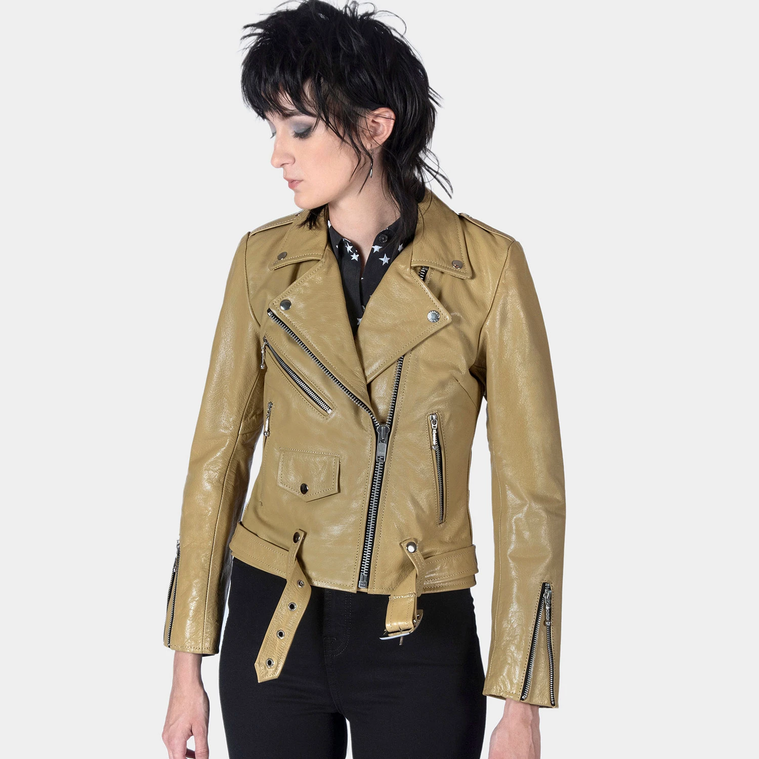 The Commando is our most traditional and recognizable leather jacket, now in prairie sand leather. Old school ball pull zippers on pockets and cuffs. The premium leather Commando relaxes and conforms to your shape and breaks in perfectly.