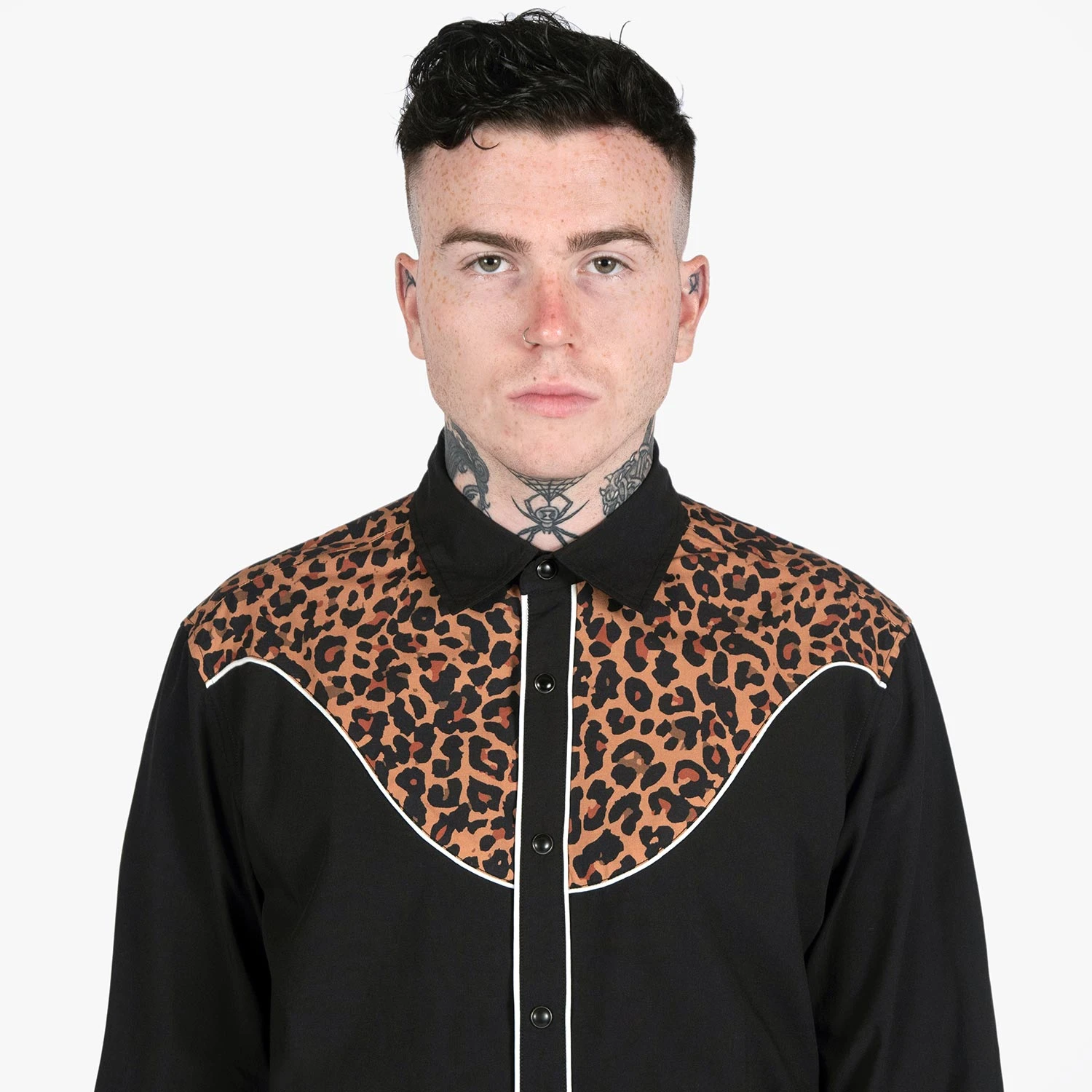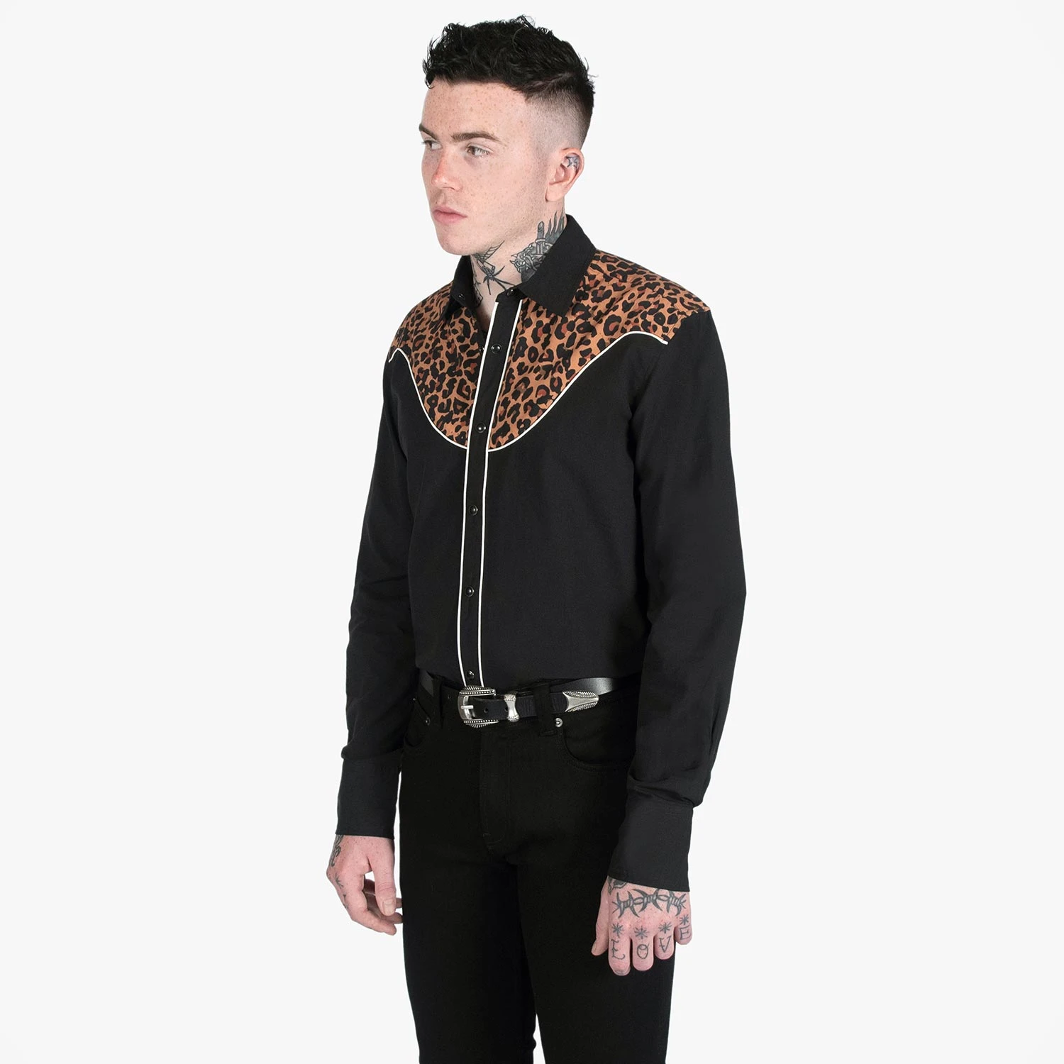 - Western snap closure on front and cuffs.