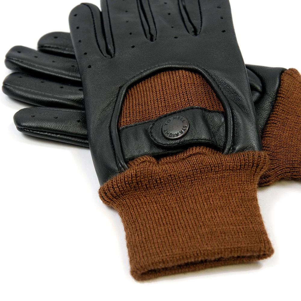 Leather gloves designed for women’s hands. Soft leather quickly conforms to your hand’s shape. Lined interior and cuffs. Comfortable on the inside and outside for a smooth grip. Straight To Hell engraved polished black snap closure.