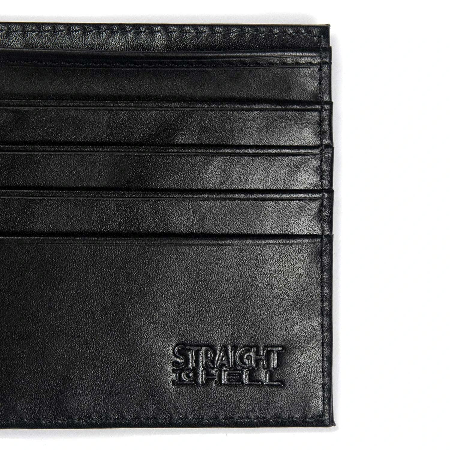Black leather bi-fold wallet. A slim design to carry just enough.