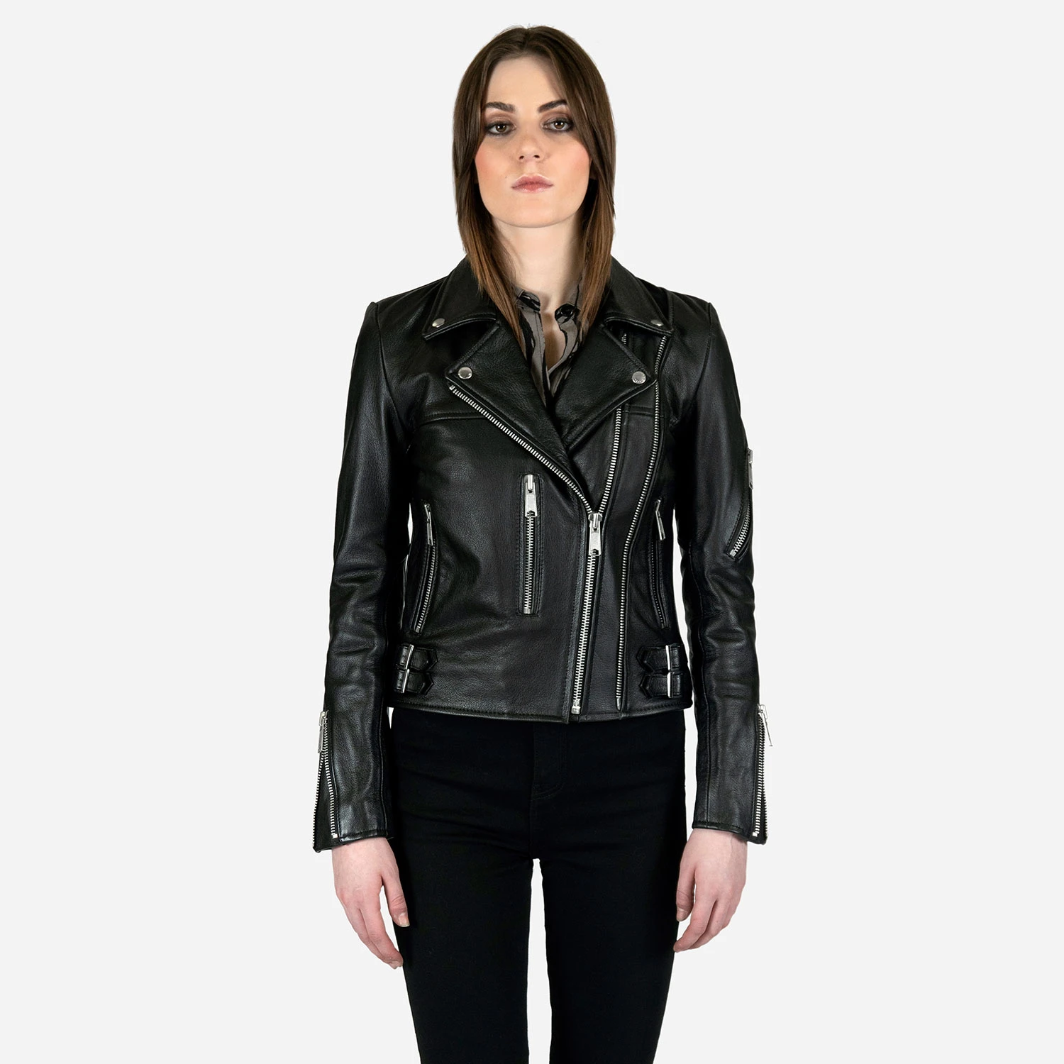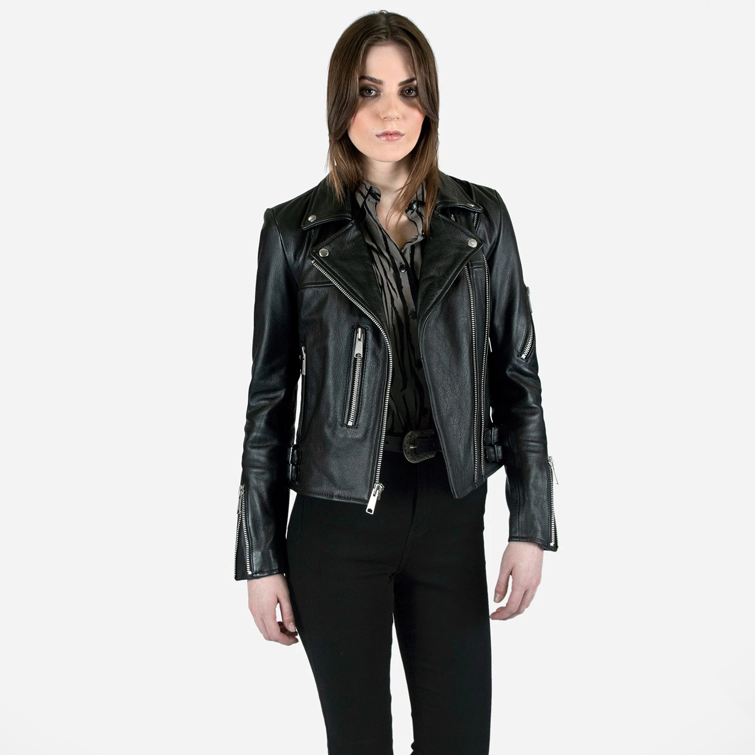 Our most dressed up leather jacket. The Grifter features eye-catching, vertical pockets and wide, polished nickel zippers. Bonus features include a bicep pocket with zipper, duel front body zippers, side straps, and unique back panels. The body offers quilted lining, and the sleeves are non-quilted. Fitted, premium leather relaxes and conforms to your shape and breaks in perfectly.