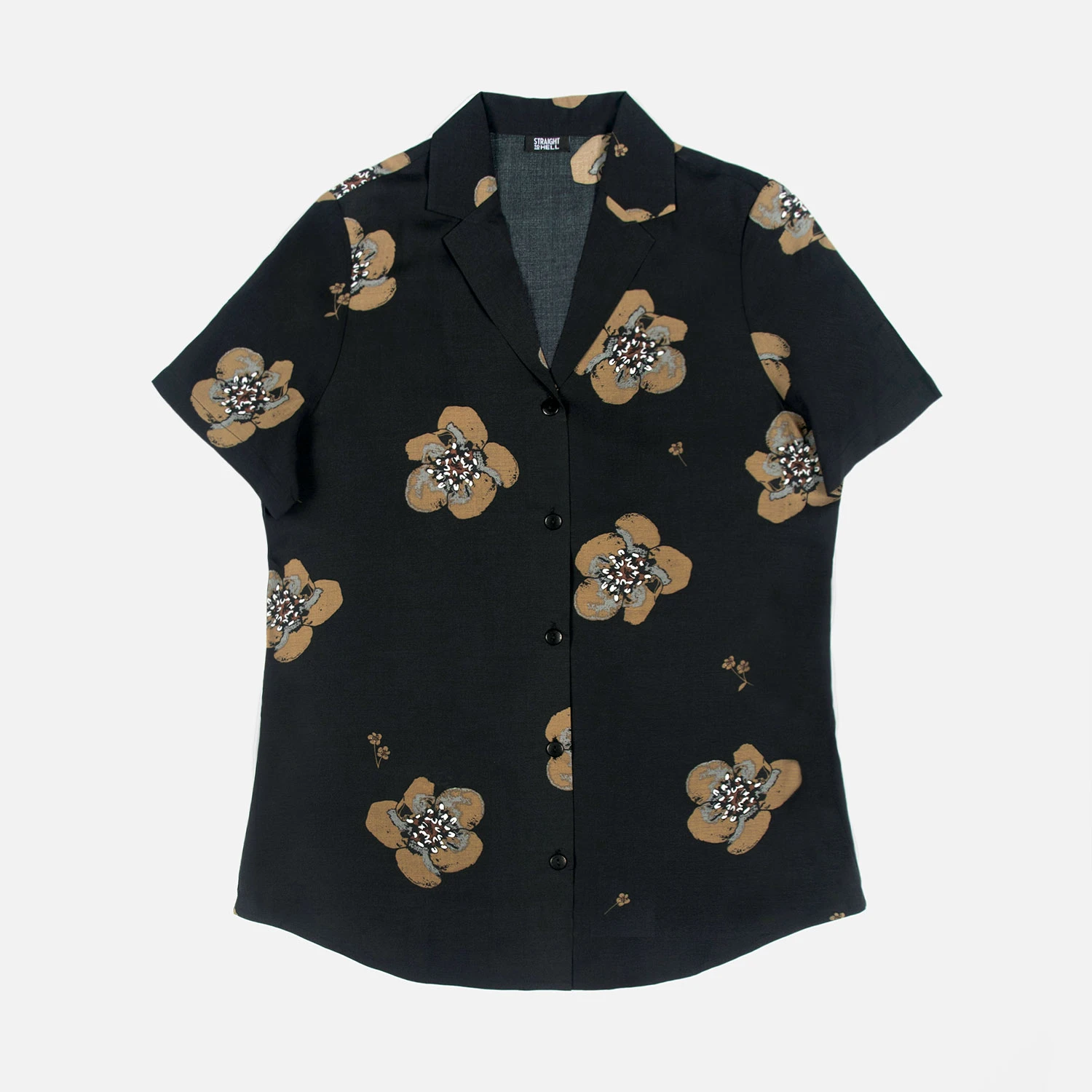 Short sleeve button up shirt with floral print and lapel collar. Soft modal fabric drapes perfectly. This is our Form fit.