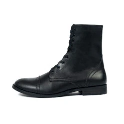 Vegan Libertine – Black And Brass Faux Leather Harness Boots (Size 7, 7.5, 8, 10.5, 11, 12, 13, 14)