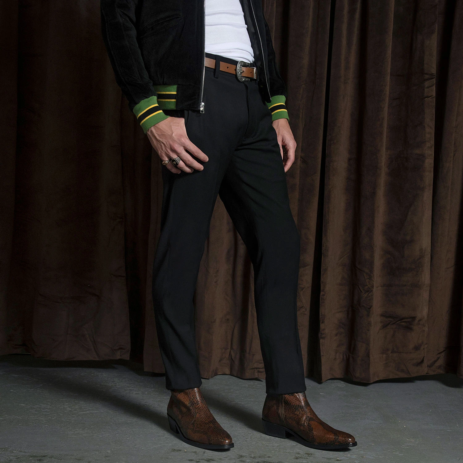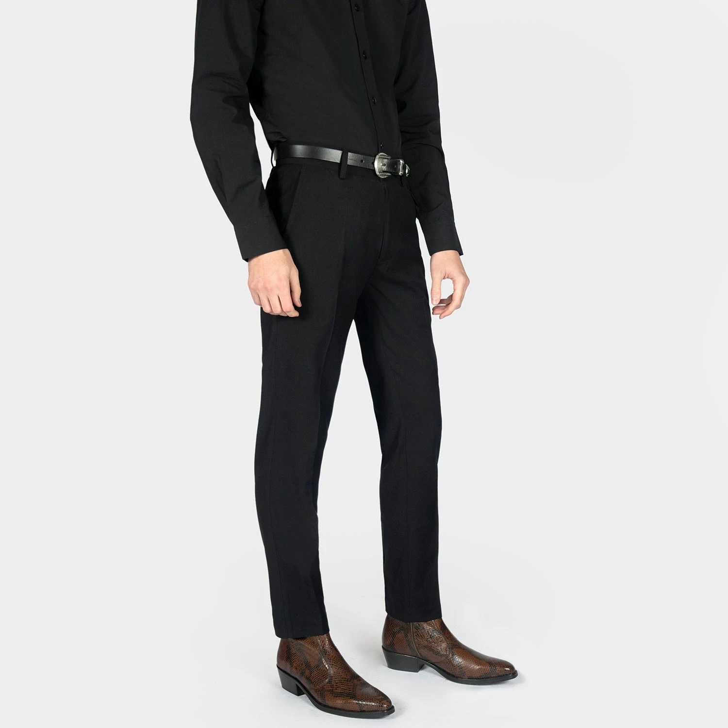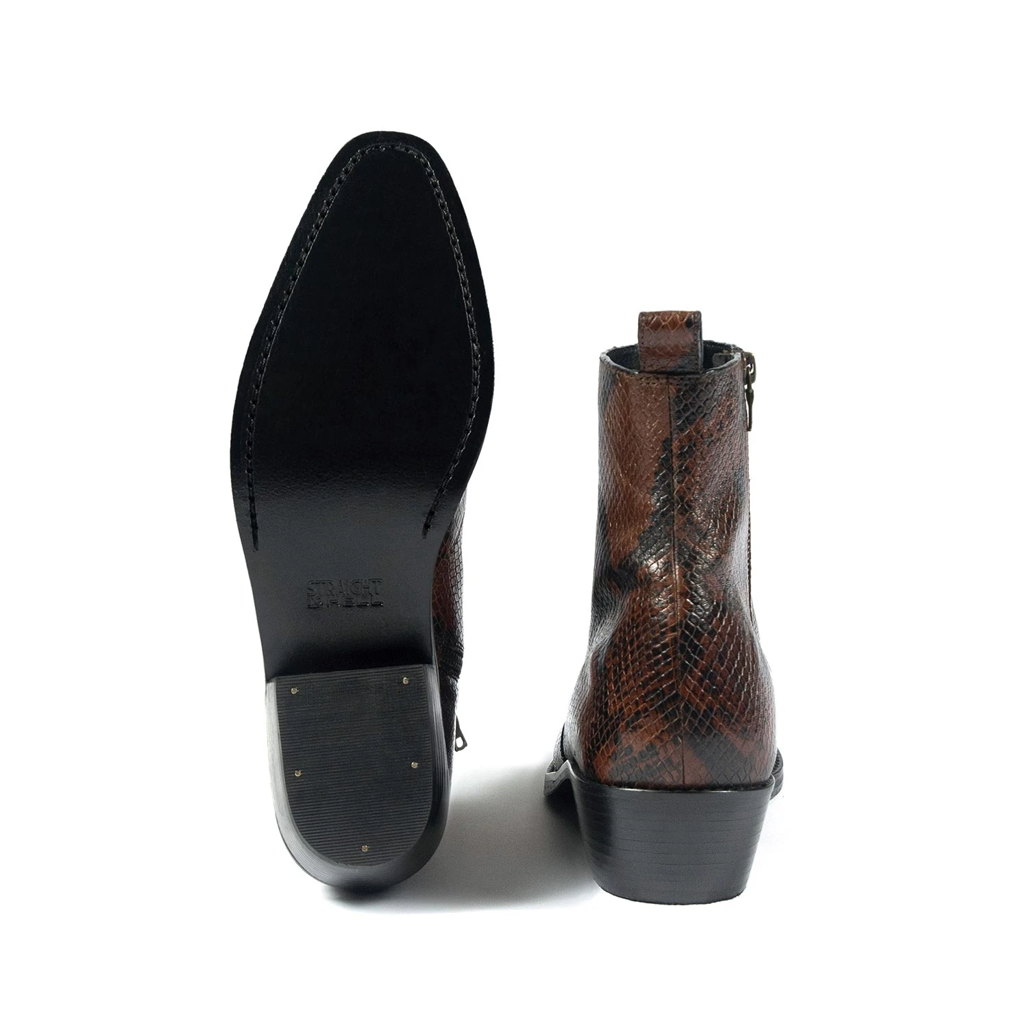 The Richards is a men’s brown snakeskin pattern, premium leather boot featuring a side ankle zipper closure and stacked heel. Hand-made, Blake stitched leather sole with STH logo engraving. Blake construction allows for a resoleable boot because the outer sole is stitched directly to the upper. This enables a durable and flexible, high-end boot.