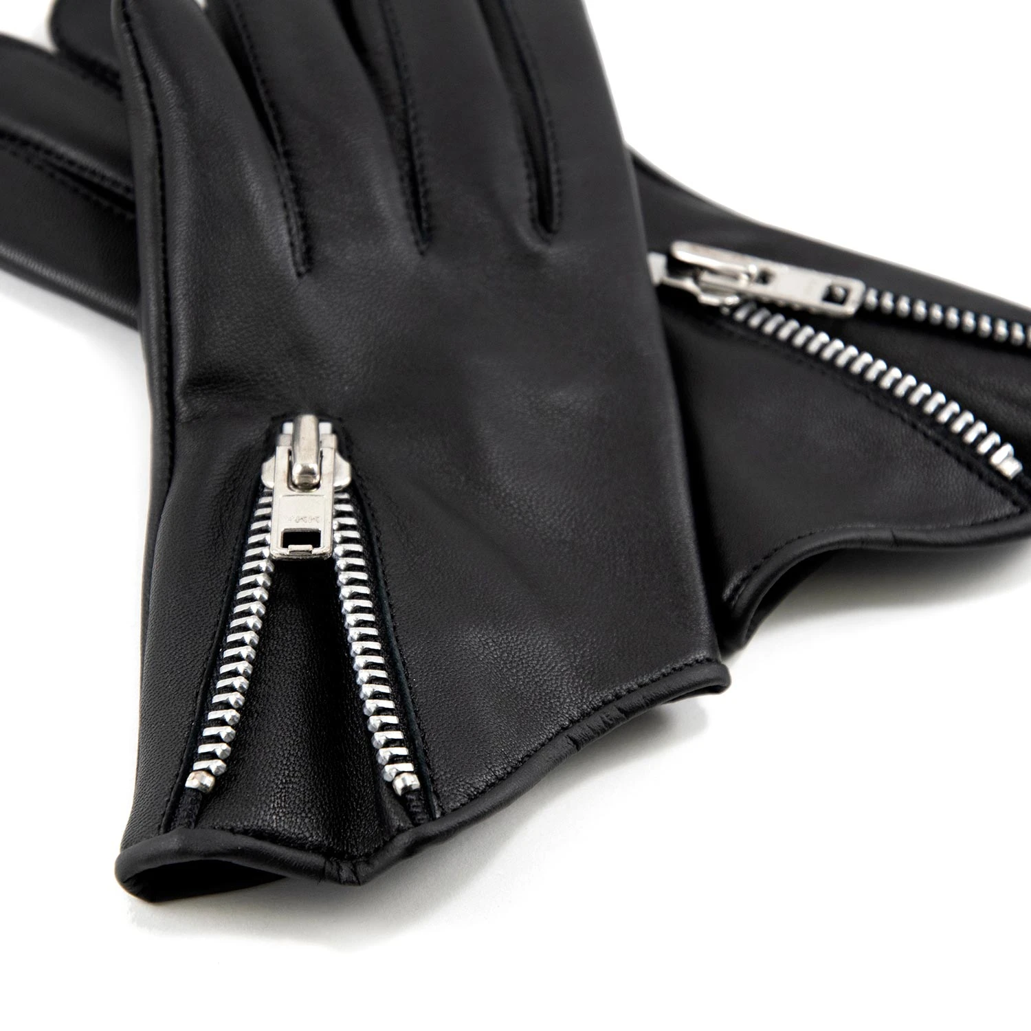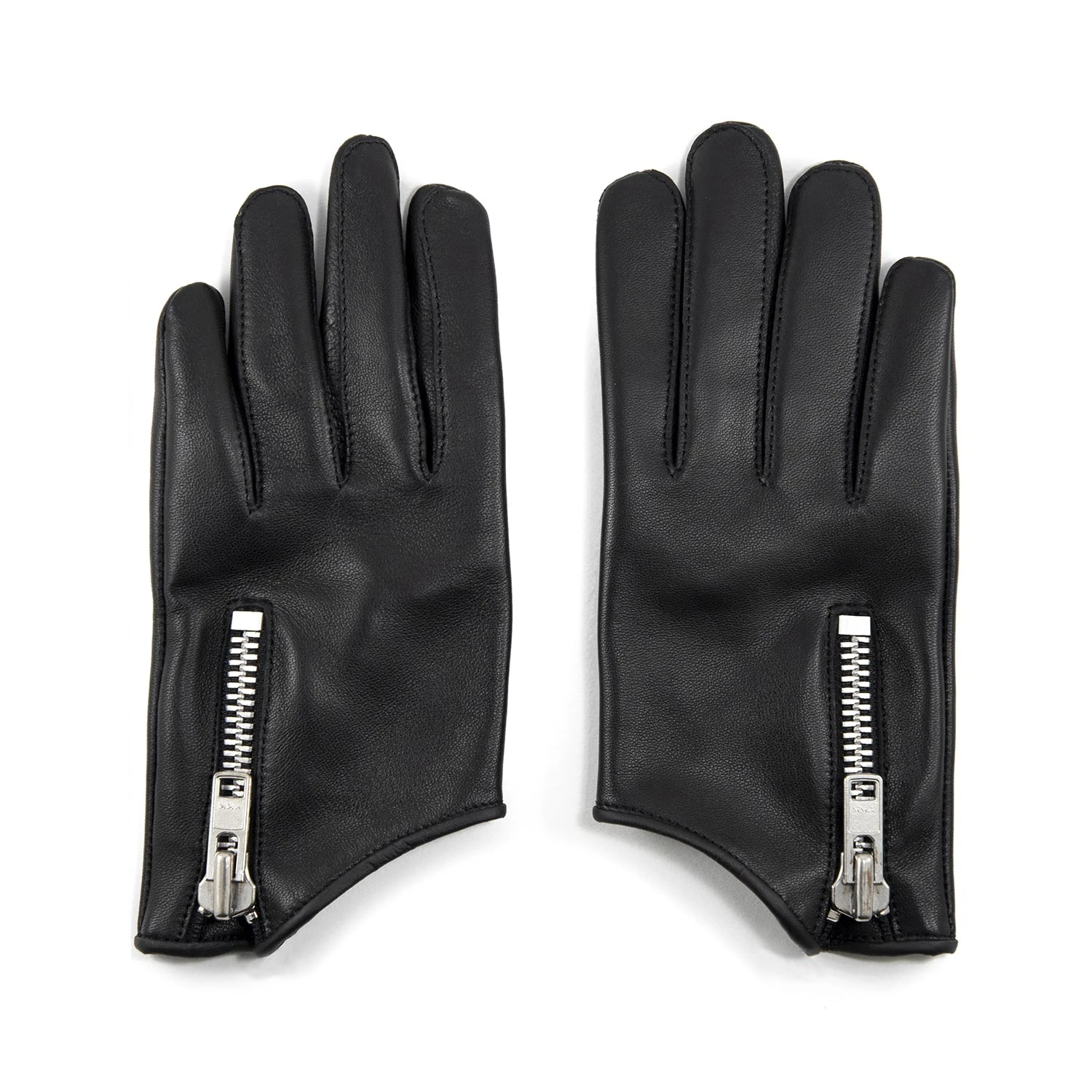 Leather gloves designed for men’s hands. Soft black leather quickly conforms to your hand’s shape. Comfortable on the inside and outside for a smooth grip. Sturdy nickel zipper closure tightens glove.