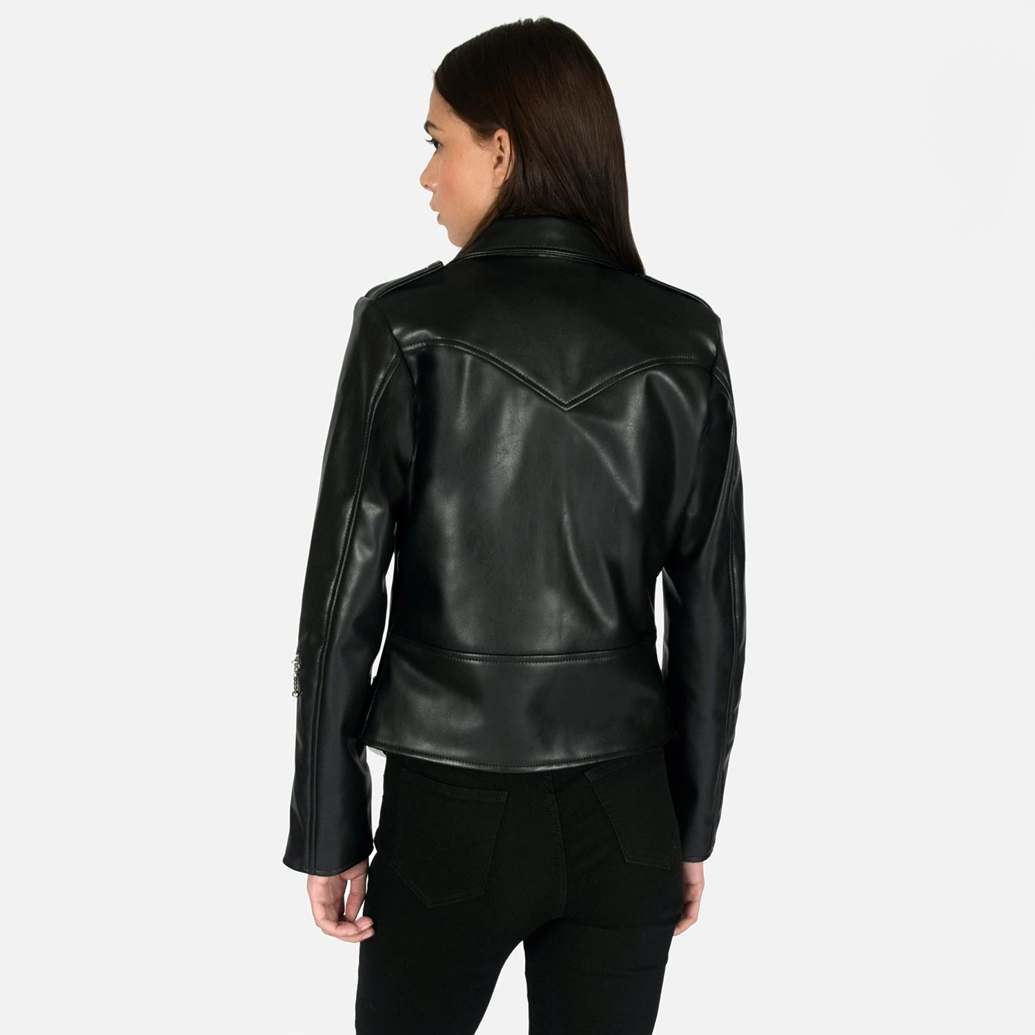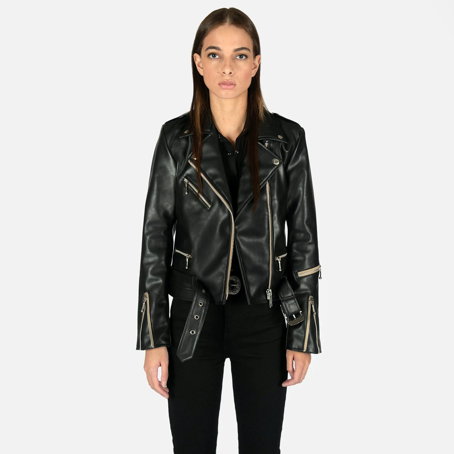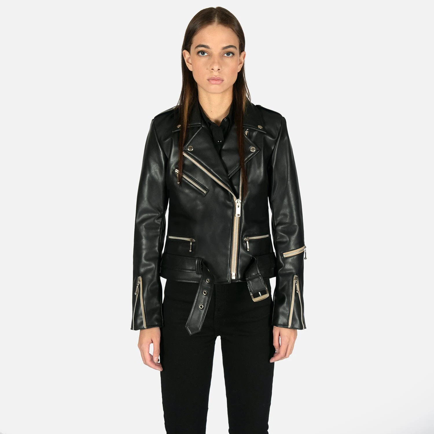 The Vegan Barracuda is ready for action. It is made from our custom STH Vegan Leatherâ„¢ and for those who prefer a quality leather substitute. Classic lapels, epaulettes, grey zipper fabric, belt, and forearm zipper. This artificial leather jacket combines old school style with stand-out features, notably a forearm zipper, polished nickel ball pull zippers, side straps, and a curved hem. The body offers quilted lining and the sleeves are non-quilted. This fitted, durable, and animal friendly jacket relaxes and conforms to your shape and breaks in perfectly. The new Vegan Barracuda is part of our STH Clothier custom fabric collection.