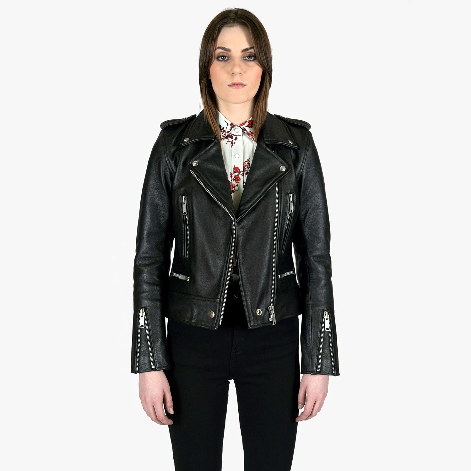 The Vincent leather jacket has an old school vibe with symmetrical details and bold hardware. The body features quilted lining and the sleeves are non-quilted. Fitted, premium leather relaxes and conforms to your shape and breaks in perfectly.